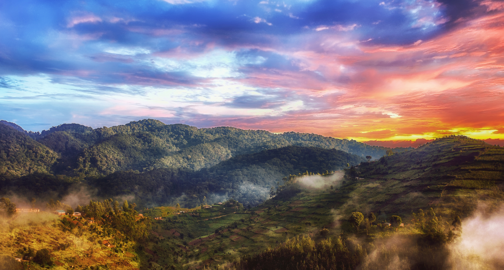 world’s last remaining Mountain Gorillas as well as chimpanzees face to face. Landscapes ranging from Afromontane